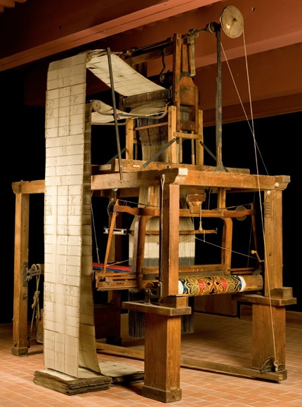 C’est justement en hybridant des technologies de ces deux domaines qui semblaient pourtant si différent, le tissage de la soie et la fabrication d’instruments de musique automatiques, que le fils d’un fabricant d’orgues de Barbarie lyonnais, Basile Bouchon a eu l’idée de transposer la technologie des orgues de Barbarie et des boites à musique au métier à tisser. Il a en effet inventé dès 1725 un système de rubans perforés pour programmer le tissage, système amélioré par son assistant Jean-Baptiste Falcon qui a remplacé le ruban perforé par un assemblage de cartes perforées liées et articulées, comme sur l’orgue de Barbarie. Mais cette invention a été d'abord délaissée, comme l’ont été bien d’autres inventions françaises, méprisées par la profession et/ou par le chef d’État de leur temps (comme, par exemple, la navigation à vapeur testée dès 1776 par Claude de Jouffroy d’Abbans, dont on peut voir plusieurs statues dans la ville de Besançon).