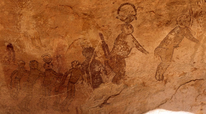 Une gravure rupestre exécuté dans une grotte du Tassili n'Ajjer (site de Jabbaren) par l'un des deux peuples à l'origine des Berbères, les Ibéromaurusiens, il y a environ dix-mille ans.