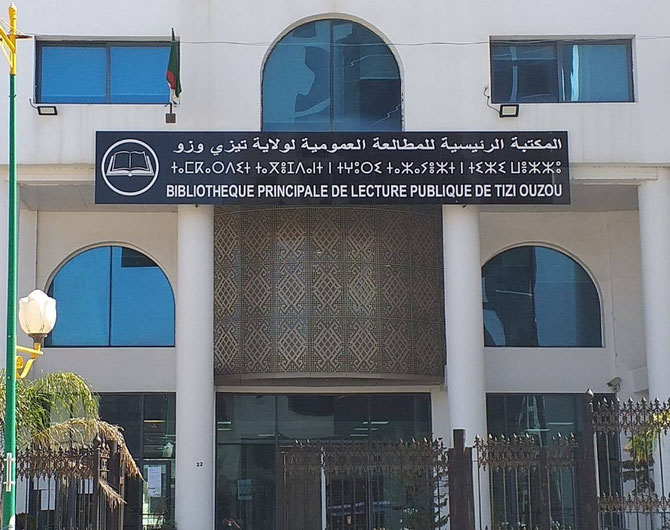 La bibliothèque principale de lecture publique de Tizi Ouzou se présente à la fois en langue arabe (avec l'alphabet arabe), en tamazight (avec l'alphabet néo-tifinagh) et en français (avec l'alphabet latin).