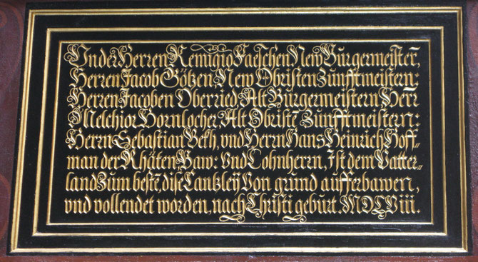 Une inscription en allemand (l'une des quatre langues officielles de la Suisse) à l'hôtel de ville de Bâle.
